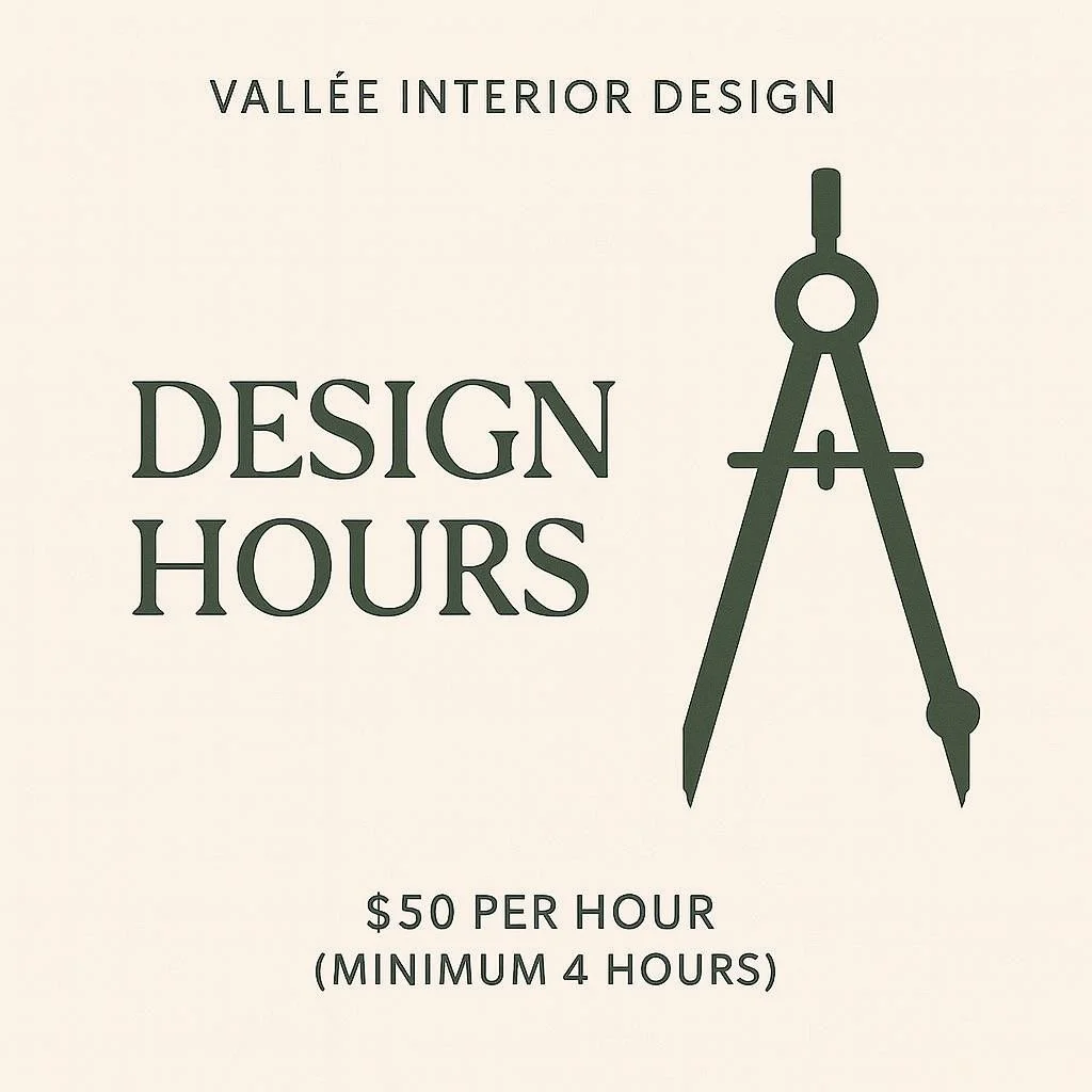 Offerings Interior Design Hours — Book by the Hour from $200.00 Light Fixture Replacement $150.00 Interior Design Consultation $200.00 Virtual Interior Design Consultation $150.00 Faucet & Plumbing Fixture Replacement $100.00 Accent Wall Design to Finish from $750.00 Colour Consultation $100.00 Mirror & Wall Accent Installation $100.00 Rent-Friendly Design Upgrade $100.00 Vallée Interior Design Gift Card from $100.00 Seasonal Styling $200.00 Equity Boost Design Package (“Style It to Sell It”) $500.00 Floating Shelf Installation $100.00